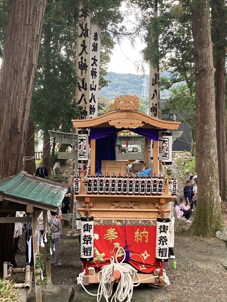 境内を練り歩く屋台や大きな幟を見ながら、秋の訪れを実感しました。
